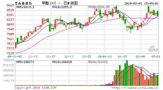 PTA:本周是春節長假后的第一個交易周,國內PTA主力合約1005整個走勢震蕩偏弱,節后第一個交易日價格大幅跳空高開,這是基于長假期間外盤大幅上漲的影響。本周一價格開盤的位置幾乎是前期高點的位置,但盤中價格開始回落,典型的高開低走行情。接下去兩個交易日價格橫盤行走,尾盤收陽但幅度很小,并沒有回補到周一價格的一半甚至三分之一處,這明顯的突出多頭力量匱乏,更對下一個交易日的走勢作了鋪墊。周四價格盤中小幅上沖后迅速回落,收盤價是當日最低價格,這意味市場缺乏信心。本周最后一個交易日周五走勢震蕩起伏,但價格依然在較低位置徘徊。