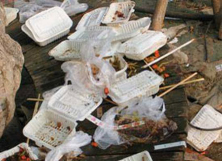 他們所說的飯盒,正是我們日常所熟悉的一次性白色塑料餐盒。2010年3月中旬,董金獅所在的民間環保機構在北京兩家著名的飯店“老邊餃子”和“東來順涮羊肉”消費、打包之后,將餐盒送往一家專業的檢驗機構檢測。
