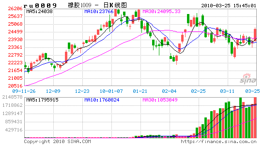 昨日,天膠成為商品市場(chǎng)最為耀眼的品種。天膠期貨價(jià)格漲幅較大。全日成交2174838手,持倉(cāng)量增加55130手至302676手。主力9月合約,以23820元/噸高開(kāi),盤(pán)中震蕩上漲,漲幅擴(kuò)大,以24675元/噸收盤(pán),上漲1010元(漲幅為4.27%),創(chuàng)出三個(gè)月來(lái)的最大漲幅。此合約全日成交2148578手,持倉(cāng)量增加56904手至268370手。