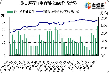 圖為岙山庫存與委內瑞拉380價格走勢圖。(圖片來源:金銀島)