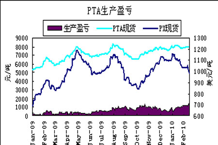 進一步看,PX受阻于1000美元關口,無力支撐PTA現貨價格上行。一方面,PX價格的弱勢導致PTA失去了成本支撐,PTA現貨價格大幅上漲就沒有基礎;另一方面,近期PTA廠商生產利潤一直保持在1500元/噸附近,導致PTA生產負荷一直維持在95%以上,而居高不下的負荷又加大了現貨市場供應,也制約了PTA現貨價格的上行。從1月份至今的價格走勢來看,PTA現貨價格與PX價格走勢出現了比較大的背離,從這個角度看,PTA現貨價格還有比較大的回調空間。