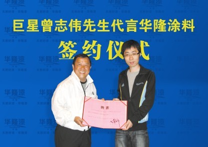 4月6日,廣東華隆涂料實業有限公司副總經理麥宗毅與香港演藝人協會主席、影視巨星曾志偉在深圳特恒豐海悅酒家簽約,聘請其成為2010-2012年度華隆涂料品牌形象大使。據悉,這是2010年華隆公司聘請明星鄧家佳代言旗下英倫漆后又一重大品牌宣傳活動,拉開了華隆涂料2010年品牌化運營的序幕。