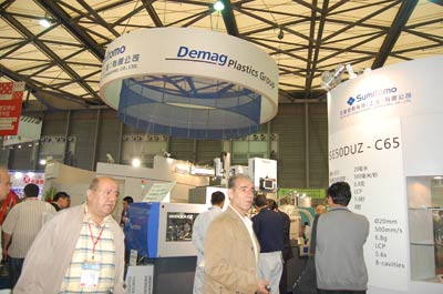 此次國際橡塑展上,德馬格也急于證明高科技解決方案的需求不再是國外企業壟斷的局勢,在其國際橡塑展展臺上,展出一臺280噸本地生產的注塑機配套據說是中國第一臺疊箱鑄模。德馬格公司還展示了德國制造的EL-Exis100噸全電式電液和液壓驅動,德馬格想證明的是用中國的技術可以為市場服務。