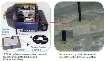 Advion公司基于納米芯片技術(shù)的全自動(dòng)微量電噴霧系統(tǒng)(NanoSpray)NanoMate,是一款用于對(duì)于復(fù)雜樣品進(jìn)行分析的新一代電噴霧質(zhì)譜的進(jìn)樣系統(tǒng)。它集成了餾分收集和芯片電噴霧技術(shù)于一體,把質(zhì)譜和液相技術(shù)完美地結(jié)合在一起。為分析復(fù)雜樣品提供更多的信息。特別適用用于FTMS, Orbitrap 或是TOF 等高分辨率的質(zhì)譜技術(shù)。
