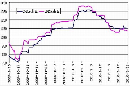 年初,受中國(guó)及印尼乙烯衍生品市場(chǎng)開工降低的影響,乙烯供應(yīng)量略顯增加,盡管如此,市場(chǎng)仍然維持供應(yīng)緊張局面,至1月中旬亞洲乙烯價(jià)格已上漲近200美元/噸。但隨著價(jià)格的走高,終端用戶的利潤(rùn)率不斷縮小,開工逐漸降低,對(duì)乙烯的需求不斷減少,市場(chǎng)漲速放緩,在高位陷入盤整。1月底,隨著9000噸遠(yuǎn)洋現(xiàn)貨的抵達(dá),市場(chǎng)商談氣氛迅速改變,亞洲乙烯價(jià)格自高位開始回落。此后,由于來自中東地區(qū)乙烯現(xiàn)貨供應(yīng)量持續(xù)上升,大量涌入的遠(yuǎn)洋報(bào)盤彌補(bǔ)了近洋貨源的不足,而中國(guó)市場(chǎng)在春節(jié)期間買氣不足,加上部分下游企業(yè)的生產(chǎn)裝置暫時(shí)關(guān)閉,市場(chǎng)需求大幅減少,亞洲乙烯連續(xù)下滑,價(jià)格回落至09年年末的水平。3月份由于日本和韓國(guó)方面計(jì)劃和意外停車的原因,市場(chǎng)供應(yīng)相對(duì)緊張,價(jià)格再度陷入盤整。但臨近月底,市場(chǎng)受壓于日本三井化學(xué)和新加坡殼牌裂解裝置的重啟,加上韓國(guó)LG化學(xué)的裂解裝置即將重啟,后市亞洲乙烯價(jià)格仍將繼續(xù)走低。