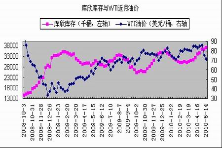 圖為庫(kù)欣庫(kù)存與WTI近月油價(jià)走勢(shì)圖。(圖片來(lái)源:光大期貨)