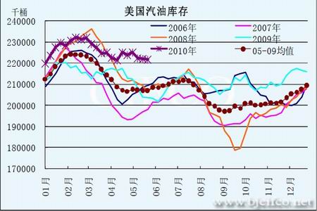 圖為美國汽油庫存走勢圖。(圖片來源:北京中期)