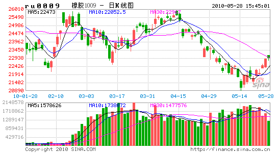 2010年4月中旬以來,天然橡膠市場(chǎng)整體經(jīng)歷了一輪幅度較大的回調(diào)。滬膠期貨4月15日起自高位連續(xù)回落,價(jià)格從25900元/噸附近下行,陸續(xù)跌破各整數(shù)關(guān)口,特別是5月14日,滬膠放量增倉(cāng)重挫,突破了2月上旬前期低點(diǎn)22000元附近的支撐,進(jìn)一步打開了下跌的空間,市場(chǎng)信心受到較大的震動(dòng),17日滬膠最低曾下探至20890元/噸,在四周左右的時(shí)間里跌幅超過了19%,但5月份的最后一周,在國(guó)內(nèi)股市的企穩(wěn)反彈、期現(xiàn)價(jià)差過大及外圍市場(chǎng)強(qiáng)勁反彈等因素刺激下,投機(jī)資金積極入市,推動(dòng)滬膠強(qiáng)勢(shì)上行,陸續(xù)突破5日、10日和20日均線,走出了連續(xù)反彈的行情。總體上看,造成天然橡膠市場(chǎng)前期表現(xiàn)如此弱勢(shì)的原因,除了其自身偏弱的基本面外,外圍市場(chǎng)特別是歐洲債務(wù)危機(jī)持續(xù)發(fā)酵引發(fā)的美元走高、商品市場(chǎng)暴跌也是使得橡膠價(jià)格不斷走低的重要刺激性因素,而最近的反彈則得益于部分短期利多因素的支撐,而國(guó)際市場(chǎng)商品市場(chǎng)整體自低位稍有企穩(wěn)也帶來了上漲的動(dòng)力。