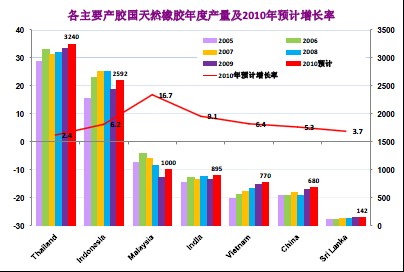 全球天然橡膠的供應(yīng)具有明顯的季節(jié)性特征,根據(jù)占全球供應(yīng)量94%的天然橡膠生產(chǎn)國(guó)協(xié)會(huì)(ANRPC)提供的統(tǒng)計(jì)報(bào)告,每年的3、4月份是天然橡膠產(chǎn)量最低的時(shí)期。在其5月月報(bào)中,ANRPC預(yù)計(jì)來自會(huì)員的天然橡膠供應(yīng)量在2010年將增長(zhǎng)6.2%至936.9萬噸,而自2007年起的三年里這一數(shù)字分別為0.2%、0.0%和-3.6%。如果把全球最主要的五個(gè)產(chǎn)膠國(guó)——泰國(guó)、印尼、馬來西亞、越南和印度的各月天然橡膠產(chǎn)量之和加以考察,可以發(fā)現(xiàn),2008年3、4月份上述五國(guó)的總產(chǎn)量分別是58.4萬噸、60.7萬噸,接下來的5至10月份各月產(chǎn)量在64.1-79.2萬噸之間,2009年3、4月份產(chǎn)量為42.8萬噸、50.2萬噸,5至10月份在56.2-75.6萬噸之間。這些數(shù)據(jù)明顯地預(yù)示,在進(jìn)入5月份之后,全球天然橡膠的供應(yīng)量將出現(xiàn)較大程度的增加。
