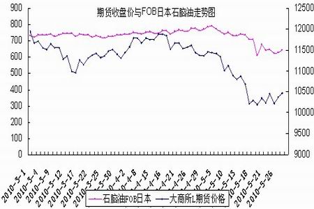 圖為期價與FOB日本石腦油走勢圖。(圖片來源:冠華期貨)
