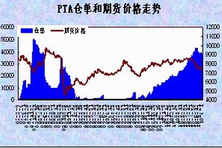 圖為PTA倉單和期貨價格走勢圖。(圖片來源:瑞達期貨)