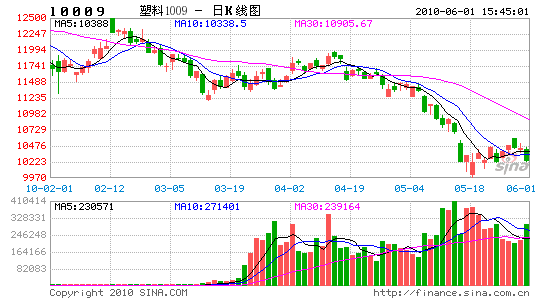 上周連塑L1009合約探底成功后,本周受到國際原油和A股市場等均出現見底跡象和小幅反彈的影響,L1009走勢以震蕩上行為主。昨日連塑再度大挫,市場交投活躍,持倉大增。收盤1009合約報10235元/噸,下跌1.96%。我們認為,連塑大跌之后,期貨與現貨市場價差已收縮至合理水平,后期下跌動能將趨緩。