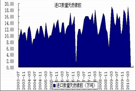 國際橡膠研究組織(IRSG)秘書長Stephen Evans在6月17日表示,如果全球經濟復蘇拖延的話,2010年全球天然橡膠消費量預計較去年增長4.4%至980萬。在今年年初,中國就一直在消耗去年最後兩季囤積的天然橡膠儲備。根據上海期交所的調查,中國截至5月底的天然橡膠庫存為20,390噸,較1月21日達到的五年高位151,832驟減87%。筆者之前在《滬膠雙重利空,六月期價可能跌破20000關口》的文章中已經提及09年美國特保案對于2010年輪胎出口將有重創,使得第一季度中國輪胎出口減少18%。而國內消費的好轉,使得國內對于天然橡膠消費量未有大幅減少。圖三可以再次驗證中國庫存的減少,在第二季度,滬膠庫存量持續性減少,庫存量從4月中旬的33600噸減少到6月份中旬的7100噸,減少幅度高達78.7%,與上期所調查的減少87%相差不多。圖二中國天然橡膠進口量也可以看出,每年第二季度至第四季度的11月份之前為中國天然橡膠進口的旺季,中國企業會在天然橡膠生產旺季進行采購補庫存。中國天然橡膠的消費量占全球天然橡膠消費量的近1/4,如果中國補庫存對于全球天然橡膠市場需求的帶動作用巨大,有可能在短期內刺激天然橡膠價格的上漲。