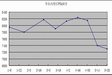 從主要生產原料PX方面看,3、4月份PX價格一直維持著小幅盤整行情。但是到了5月份,受到油價大幅回落的影響PX價格快速跳水,尤其后半個月時間內,PX價格出現明顯下滑態勢。
