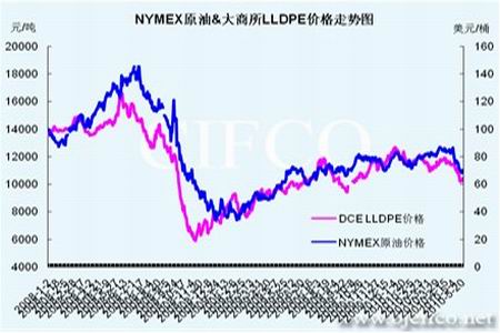 圖為NYMEX原油與大商所LLDPE價(jià)格走勢(shì)對(duì)比圖。(圖片來源:文華財(cái)經(jīng)、北京中期)