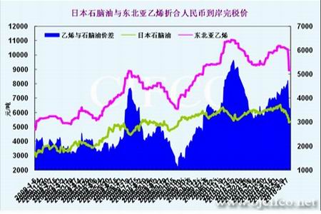 圖表 4:日本石腦油與東北亞乙烯價(jià)格走勢(shì)對(duì)比圖