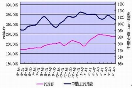 圖表 14:PE現(xiàn)貨庫存與中塑倉單LLDPE指數(shù)變化對比圖