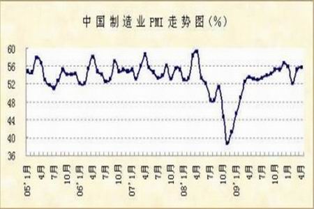 4月份,中國制造業(yè)采購經(jīng)理指數(shù)(PMI)為55.7%,比上月上升0.6個百分點。該指數(shù)已持續(xù)14個月保持在50%以上,反映出中國經(jīng)濟已走向穩(wěn)定較快增長的軌道。