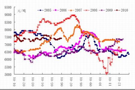圖7: 2005~2010 PVC華南市場電石法PVC季節性走勢圖