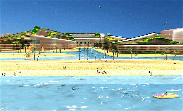 計算機繪圖顯示了科學家們想象中的“人造小島”完工后的景象。