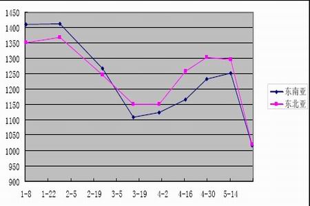 圖為2010年東南亞與東北亞乙烯報價走勢圖。(圖片來源:神華期貨)