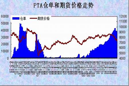 圖為PTA倉單和期貨價格走勢圖。(圖片來源:瑞達期貨)