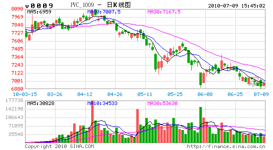 年初PVC期價沖高受阻,隨后因中國人民銀行意外上調(diào)三個月央票發(fā)行收益率大幅跳水。之后原油大幅回調(diào),現(xiàn)貨市場維持弱勢,需求持續(xù)疲軟,加上1月合約交割造成部分低價貨源沖擊現(xiàn)貨市場,PVC期貨順勢下跌。但受成本支撐,期價回落至7250附近后觸底反彈。春節(jié)長假過后的第一個交易日,PVC期貨大幅跳空高開,但隨后受獲利盤離場、現(xiàn)貨市場成交持續(xù)疲弱等因素影響,期價再度震蕩下行,回落至7300-7500區(qū)間震蕩盤整。受良好的經(jīng)濟數(shù)據(jù)提振,加上期貨倉單注銷對市場的沖擊小于預(yù)期,3月下旬起期價再度走高。但 “高盛欺詐事件”、歐元區(qū)債務(wù)危機等事件引發(fā)全球金融市場動蕩,4月下旬期價自高位開始回落。盡管電價上調(diào)對PVC形成一定成本支撐,但金融市場利空頻出、國內(nèi)房地產(chǎn)調(diào)控政策連續(xù)出臺,PVC期貨一路震蕩走低,目前已回落至7000元整數(shù)關(guān)口附近。