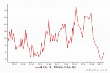圖為橡膠板、管、帶的制造同比走勢圖。(圖片來源:中信建投期貨)