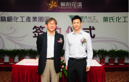 2010年7月9日,香港上市公司葉氏化工集團(tuán)有限公司和上海精細(xì)化工產(chǎn)業(yè)園區(qū)今天在上海市金山區(qū)人民政府會(huì)議中心舉行了“紫荊花漆上海金山項(xiàng)目”的簽約儀式。儀式由精細(xì)化工產(chǎn)業(yè)園區(qū)第二工業(yè)區(qū)管委會(huì)主任余旭峰主持,葉氏化工集團(tuán)代表、紫荊花漆代表、精細(xì)化工產(chǎn)業(yè)園區(qū)代表和金山區(qū)領(lǐng)導(dǎo)參加了簽約儀式。于簽約儀式中,葉氏化工集團(tuán)行政總裁黃金熖先生和金山區(qū)政府領(lǐng)導(dǎo)分別發(fā)表講話并正式簽約。