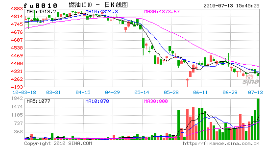 在經(jīng)過(guò)歐債危機(jī)而大幅下挫的原油在5月底止跌企穩(wěn),6月份出現(xiàn)較多反彈,油價(jià)在6月份最高點(diǎn)一度接近80美元/桶,因歐元區(qū)的債務(wù)危機(jī)在歐盟及IMF出手拯救之后,市場(chǎng)憂慮心理緩解,原油價(jià)格再一次站穩(wěn)70美元/桶關(guān)口,該重要關(guān)口作為全球最大的石油輸出國(guó)——OPEC的心理價(jià)位,其也對(duì)油價(jià)有較大的心理支撐作用,使得在油價(jià)接近或低于這個(gè)價(jià)位時(shí),投機(jī)資金的心理明顯發(fā)生較大的變化,6月份國(guó)內(nèi)的匯率機(jī)制改革的消息也使得商品市場(chǎng)受到較大的提振,因人民幣升值使得國(guó)內(nèi)將進(jìn)口更多商品預(yù)期加強(qiáng)。從基本面上看,美國(guó)高企的原油庫(kù)存仍然壓制油價(jià)在短期的上行空間,商業(yè)原油庫(kù)存處于歷史同期的高點(diǎn),而最重要的交割庫(kù)——庫(kù)欣的原油庫(kù)存近期也連創(chuàng)歷史新高,這也對(duì)油價(jià)形成較大壓制,油價(jià)也承壓未能突破80美元/桶關(guān)口。國(guó)內(nèi)方面,滬燃油跟隨原油企穩(wěn),但反彈力度不大,國(guó)內(nèi)偏弱的基本面限制滬燃油上行,6月份滬燃油市場(chǎng)依然呈現(xiàn)交投低迷態(tài)勢(shì)。