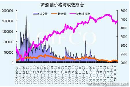 圖為滬燃油價(jià)格與成交持倉(cāng)走勢(shì)圖。(圖片來(lái)源:文華財(cái)經(jīng),北京中期)