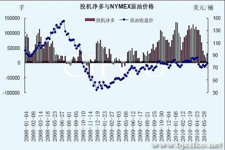 北京時間2010年6月18日周五晚間,美國商品交易委員會(CFTC)公布的數據顯示,截止6月15日當周,NYMEX的原油期貨總持倉為1336533手,比上次報告略有增加,投機凈多頭為32970手,上次報告則不足2萬手,投機凈多頭為連續(xù)5周減少后首次增加,其中投機空頭大幅減少。從分類持倉數據看,主要的投機資金——管理基金的投機凈多頭則連續(xù)兩周增加,投機客已經由空轉多,從持倉數據看,油價底部已經呈現(xiàn),70美元/桶再次成為了油價的強勁支撐。