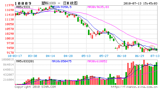 本月初受歐洲債務(wù)危機(jī)的影響,全球經(jīng)濟(jì)普遍處于恐慌狀態(tài),嚴(yán)重影響了投資者的信心,國(guó)際原油深度回落,盤中一度破70美元大關(guān),全球股票指數(shù)巨幅下探,到中旬有反彈跡象。受此影響,塑料倉(cāng)單和現(xiàn)貨市場(chǎng)均呈現(xiàn)下行趨向,成交氣氛低迷,走貨較5月底依舊冷淡。進(jìn)入月尾,連塑市場(chǎng)資金大幅流入,加之匯改影響,連塑小幅反彈。但現(xiàn)貨走貨情況依然一般,中塑LLDPE指數(shù)低位徘徊。