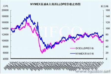 圖為NYMEX原油與大商所LLDPE價格走勢對比圖。(圖片來源:文華財經 北京中期)