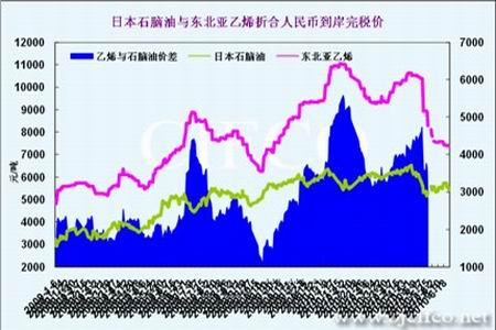 圖1-4:日本石腦油與東北亞乙烯價格走勢對比圖