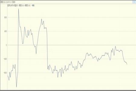 圖為滬膠1011與1101合約價差走勢圖。(圖片來源:瑞達期貨)
