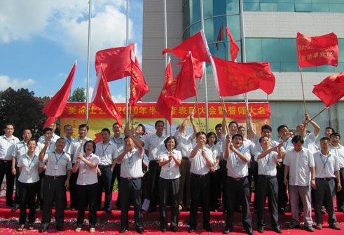 7月12日上午,天朗氣清,艷陽高照。美涂士2010年半度表彰大會(huì)暨誓師大會(huì)在總部辦公大樓下隆重舉行。公司董事長周偉建先生、董事王曼酈小姐親臨大會(huì)現(xiàn)場(chǎng)并發(fā)表重要講話。