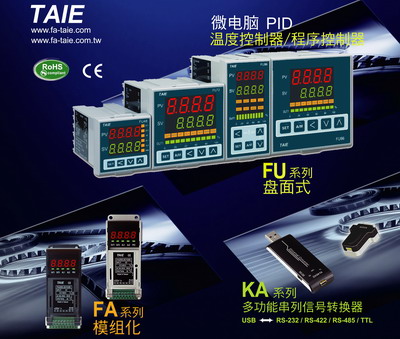 臺儀(TAIE)溫控器精度0.2%質(zhì)量比日本品牌RKC,FUJI,OMRON同規(guī)格性能還要好,但價格更具競爭優(yōu)勢。FY (多功能) & FU(歐洲色系) & FA(軌道式) 系列產(chǎn)品溫控器具有輸出百分比, 三線式比例馬達閥控制, 傳送輸出, 遙控輸入, MODBUS_RS485通訊等特殊功能, 并已行銷全球60多個國家。
