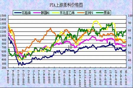 自進入7月份以來,在原油觸底反彈的帶動下,除亞洲乙烯的價格仍在震蕩下行外,PTA產業鏈上游原料的價格均有所止跌。亞洲石腦油的價格自7月中旬的624美元回升至658美元,漲34美元;混合二甲苯的價格則上漲了18美元,報735美元/噸。對二甲苯的價格上漲較為明顯,每噸上漲了44美元。從統計數據中,我們看到,截止7月26日,石腦油、混合二甲苯、對二甲苯的利潤空間僅維持在27、40、20美元一帶,處于歷史低位,隨著全球經濟穩步復蘇,需求逐步提高,后市其價格仍是易漲難跌。