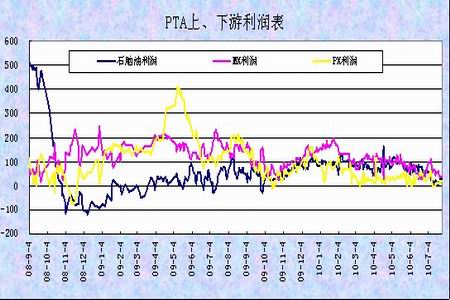 圖為PTA上、下游利潤表走勢圖。(圖片來源:瑞達期貨)