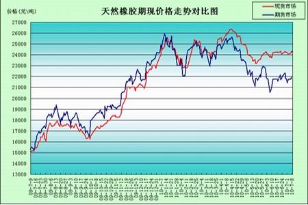 圖為天然橡膠期現(xiàn)價格走勢圖。(圖片來源:冠華期貨 WIND)