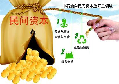 8月11日,全國工商聯石油業商會秘書長馬莉表示,為了落實國新36條,中石油向民間資本開放天然氣管道建設與經營,成品油銷售和裝備制造三個領域。