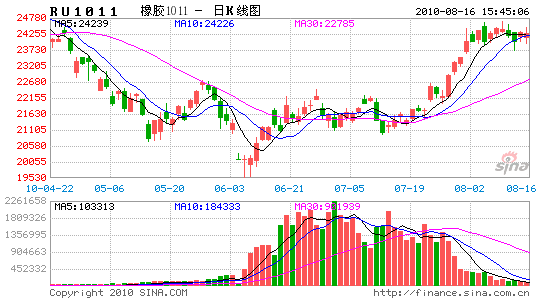 本周橡膠主力合約1101價格走勢以震蕩為主,5個交易日最高價格為25200,最低價格為24165,價格在1000左右的區間震蕩。整體上漲趨勢沒有改變,價格震蕩只是對前期上漲的修整。東京膠主力合約01與滬膠走勢相近,主要以震蕩為主,本周最高價為284.8,最低為273.5。