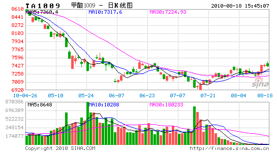 歐洲經(jīng)濟(jì)加速回暖,歐債危機(jī)影響逐漸減弱及近期疲弱的美國經(jīng)濟(jì)數(shù)據(jù)的刺激下,近期國際原油的價(jià)格持續(xù)上漲,并突破了80美元的整數(shù)關(guān)口。受此影響,經(jīng)歷了長時(shí)間回調(diào)整理的PTA期貨也走出了一波幅度較大的反彈行情。通過對基本面的分析,我們認(rèn)為,受高利潤、高庫存的制約,PTA的上行空間將比較有限,而穩(wěn)步回暖的宏觀經(jīng)濟(jì)及寬裕的市場流動(dòng)性又對商品市場形成有力的支撐。預(yù)計(jì)后市PTA將維持寬幅震蕩的運(yùn)行格局。