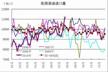 圖為美國(guó)原油進(jìn)口量走勢(shì)圖。(圖片來(lái)源:北京中期)