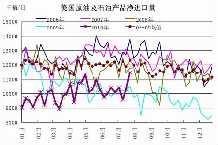 圖為美國(guó)原油及石油產(chǎn)品凈進(jìn)口量走勢(shì)圖。(圖片來(lái)源:北京中期)