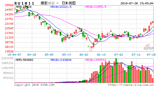 TOCOM橡膠連續(xù)市場(chǎng)本月度走勢(shì)持續(xù)處于震蕩下行的波動(dòng)區(qū)間內(nèi),臨近月底隨著8月合約交割,近遠(yuǎn)月貼水修復(fù),加上股市強(qiáng)勢(shì)提振上,走出了低迷格局,呈現(xiàn)補(bǔ)漲行情。與日膠走勢(shì)較為相反的是滬膠市場(chǎng),本月初以來(lái)基本是以震蕩攀升的走勢(shì)前進(jìn),在未突破前期高點(diǎn)形成的壓制之前,整個(gè)市場(chǎng)處于混沌整理中,上下千點(diǎn)之間波動(dòng),大部分以浙江系資金的多空換倉(cāng)來(lái)左右市場(chǎng)起伏。直至月底,滬膠借助周邊商品、股市等金融市場(chǎng)人氣改善之機(jī),繼續(xù)多頭大幅增倉(cāng),打破連續(xù)多日區(qū)間震蕩,破位跳漲,一舉站上60日均線,技術(shù)形勢(shì)明顯轉(zhuǎn)強(qiáng),將價(jià)格順?biāo)浦壑?個(gè)月以來(lái)的箱體震蕩上沿。截止7月28日,滬膠1011合約最低20920點(diǎn),最高23160點(diǎn),較上一月底上漲接近1300余點(diǎn)或6%以上。