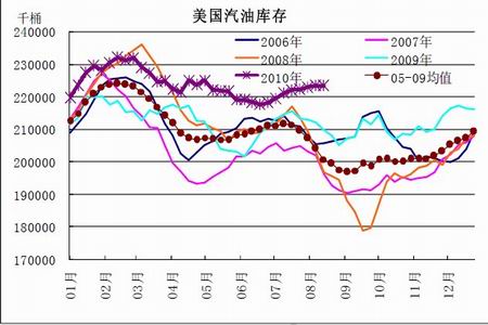 圖為美國汽油庫存走勢圖。(圖片來源:北京中期)