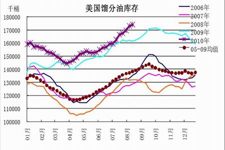 圖為美國餾分油庫存走勢圖。(圖片來源:北京中期)