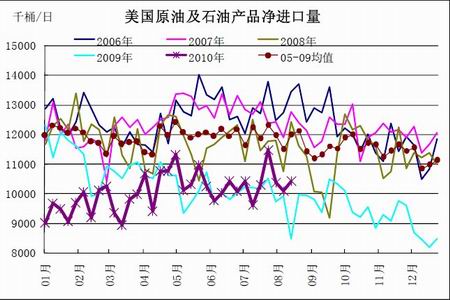 圖為美國原油及石油產(chǎn)品凈進口量走勢圖。(圖片來源:北京中期)